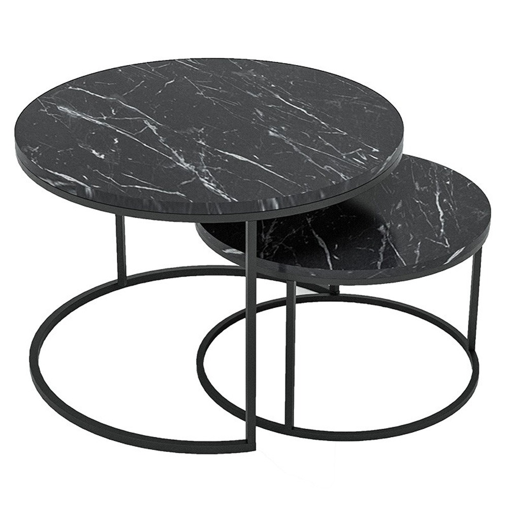 Τραπέζι σαλονιού Rota MDF ανθρακί μαρμάρου-μαύρο Φ60x60cm