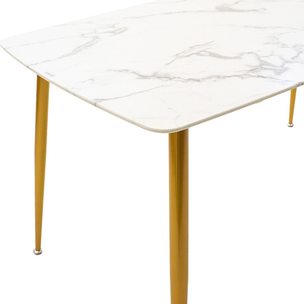 0381303 5 Τραπέζι Κουζίνας Paris Γυάλινο Λευκό Μαρμάρου - Χρυσό 150x80x75cm