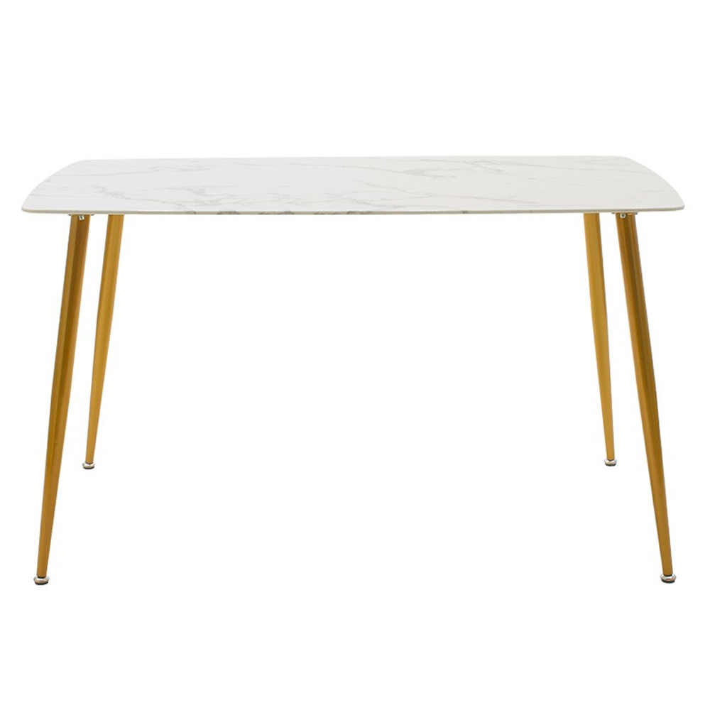 0381303 4 Τραπέζι Κουζίνας Paris Γυάλινο Λευκό Μαρμάρου - Χρυσό 150x80x75cm