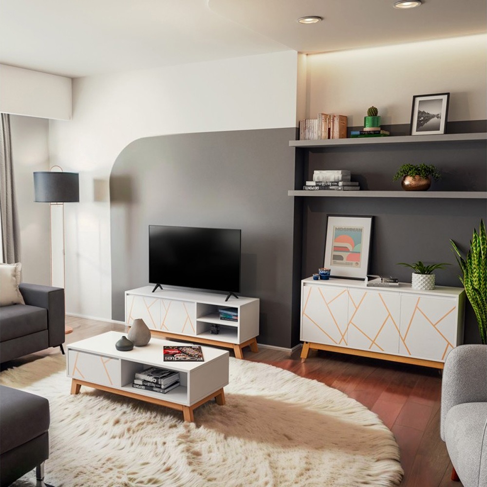 0381425 3 Τραπέζι σαλονιού Aria pakoworld λευκό-φυσικό 100x50x37 εκ