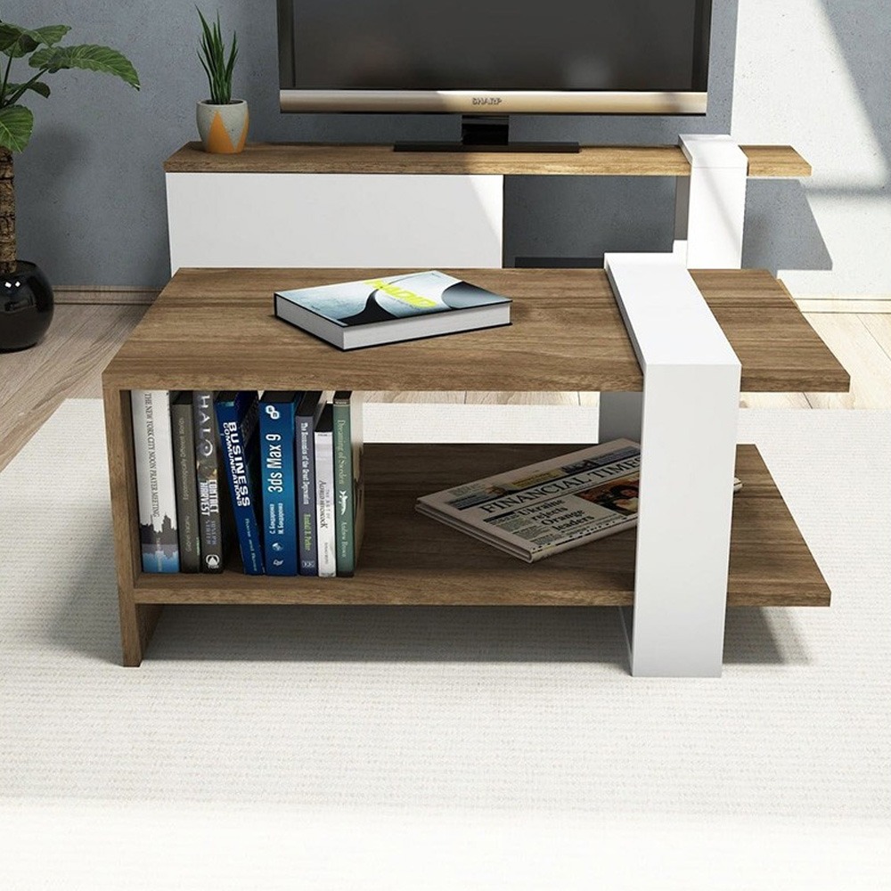 0381420 1 Τραπέζι σαλονιού Cave pakoworld χρώμα καρυδί-λευκό 80x50x35εκ