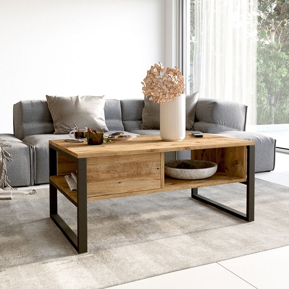 0381448 4 Τραπέζι σαλονιού Honora pakoworld oak-μαύρο 100x60x44,5εκ