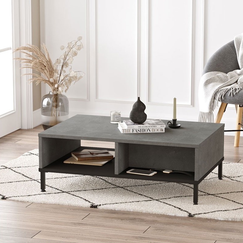 0381444 1 Τραπέζι σαλονιού Martian pakoworld μελαμίνης αντικέ ανθρακί-μαύρο 90x60x31.5εκ