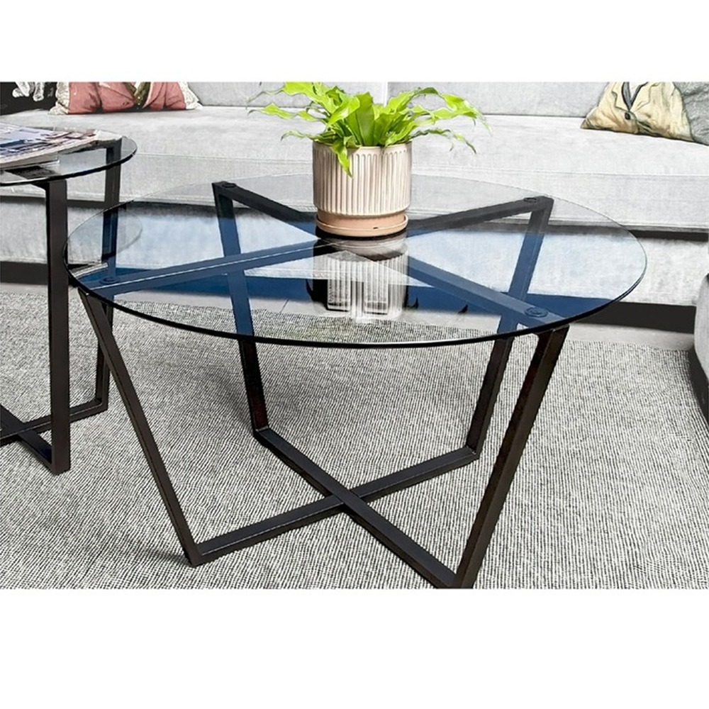 Τραπέζι σαλονιού Quendy pakoworld μαύρο μέταλλο-γυαλί Φ90×45εκ