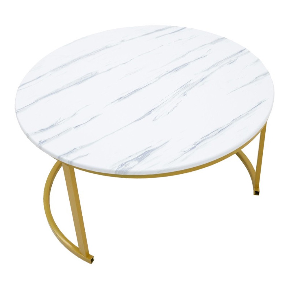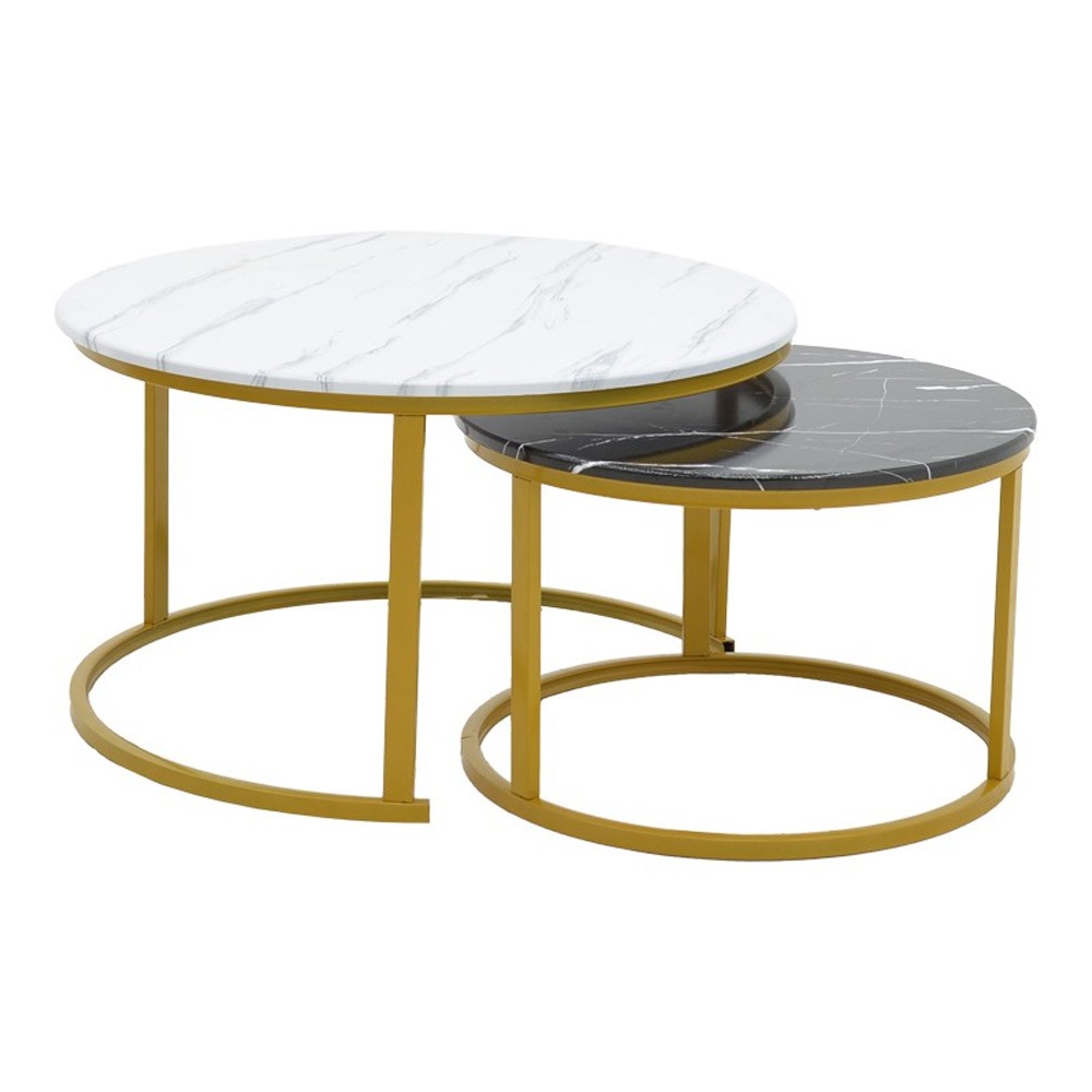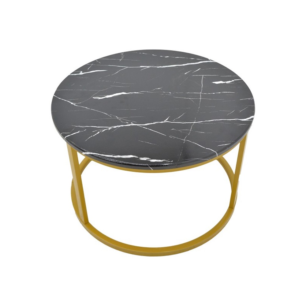 Τραπέζι σαλονιού Emilian pakoworld μελαμίνης μαύρο μαρμάρου-μαύρο μέταλλο Φ60×42εκ