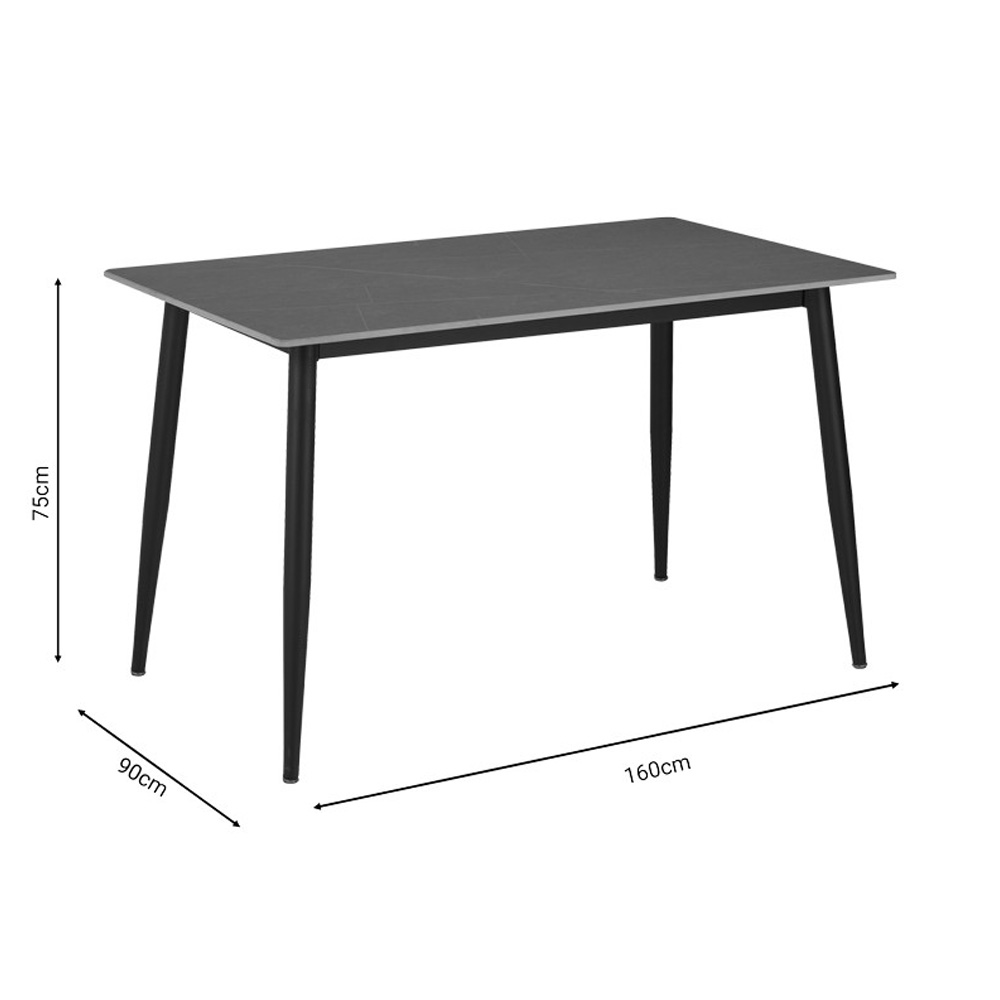 0381362 4 Τραπέζι Gustas pakoworld γκρι μαρμάρου sintered stone-μαύρο μέταλλο 160x90x75εκ