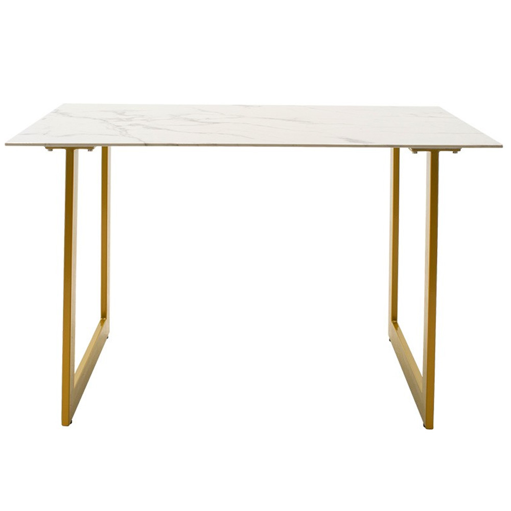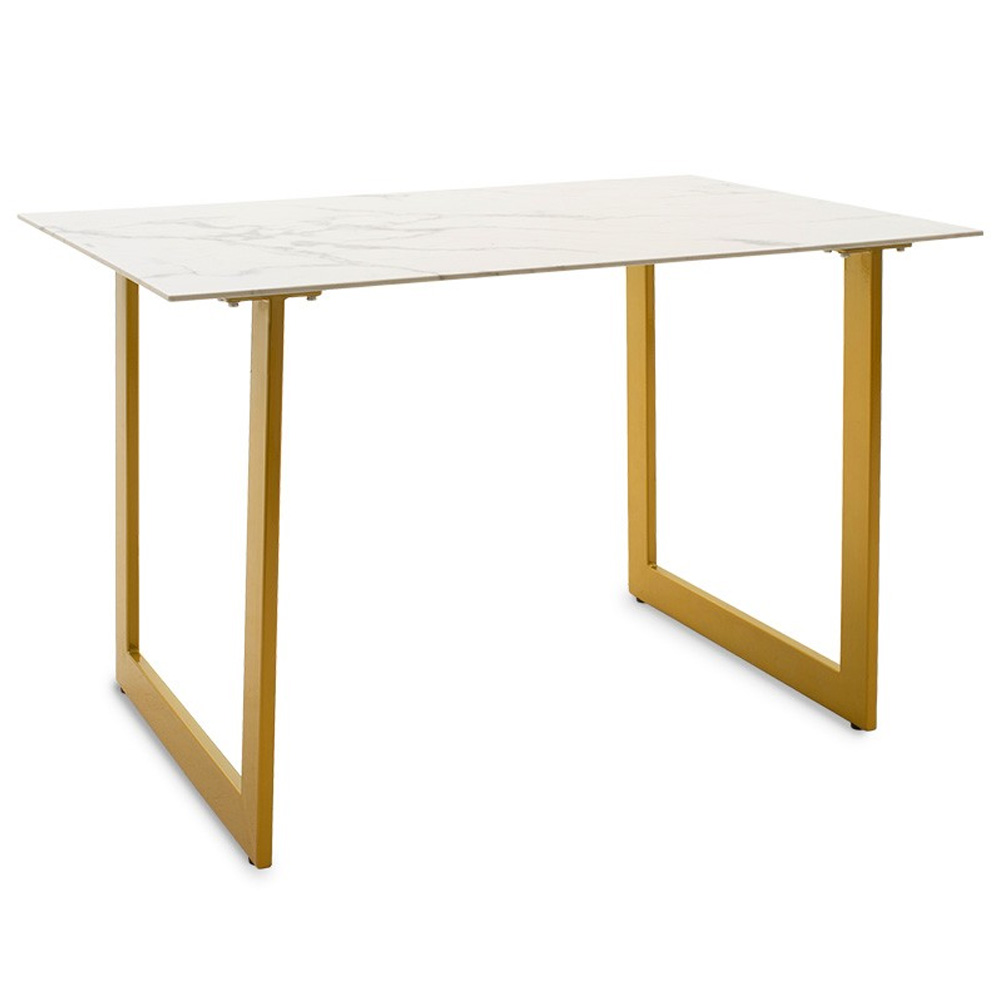 Τραπέζι Paris pakoworld ορθογώνιο γυαλί 8mm σχέδιο μαρμάρου-χρυσό 120x80x75εκ