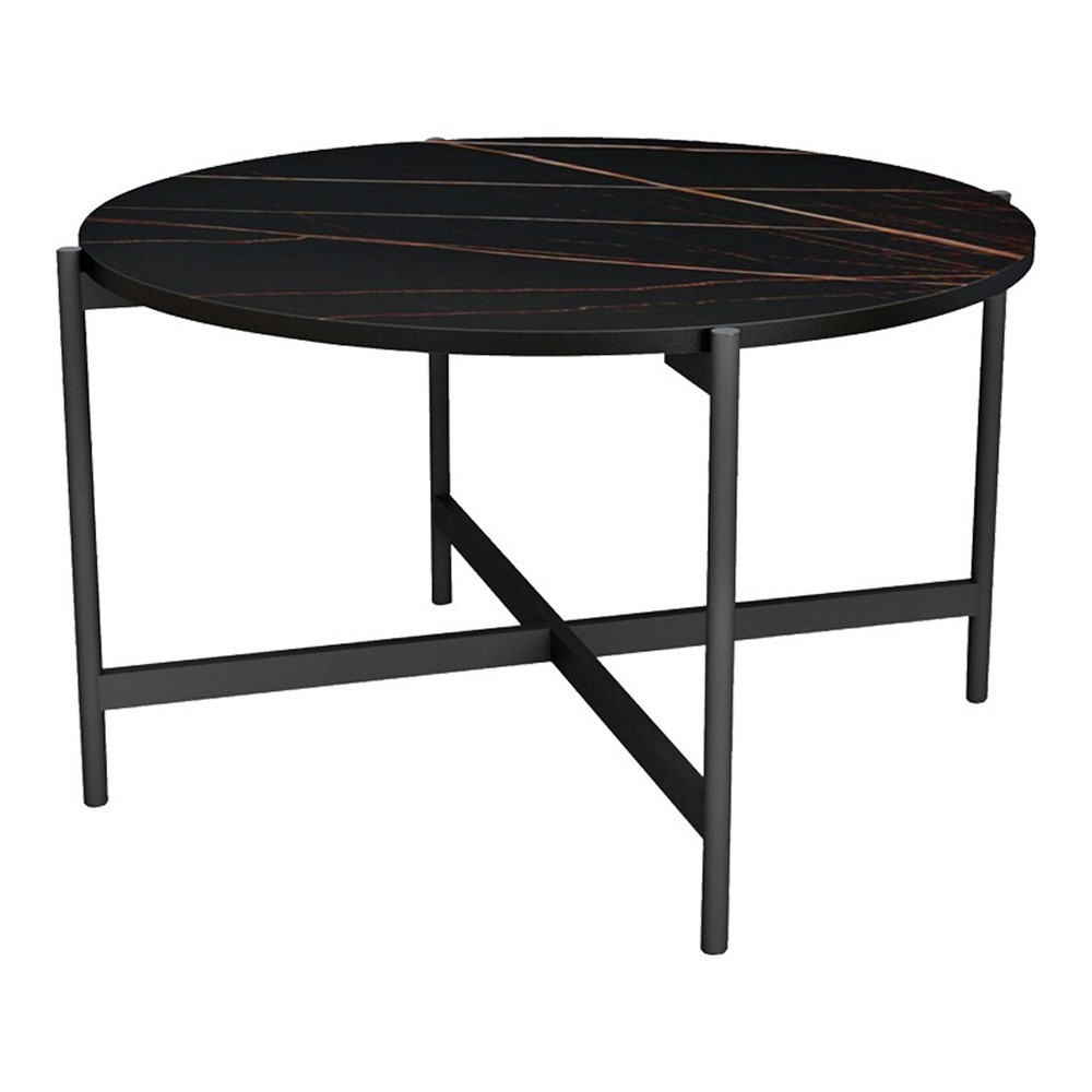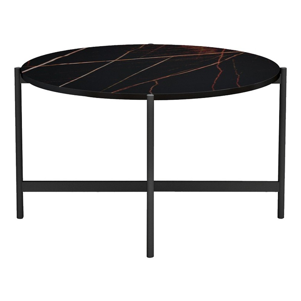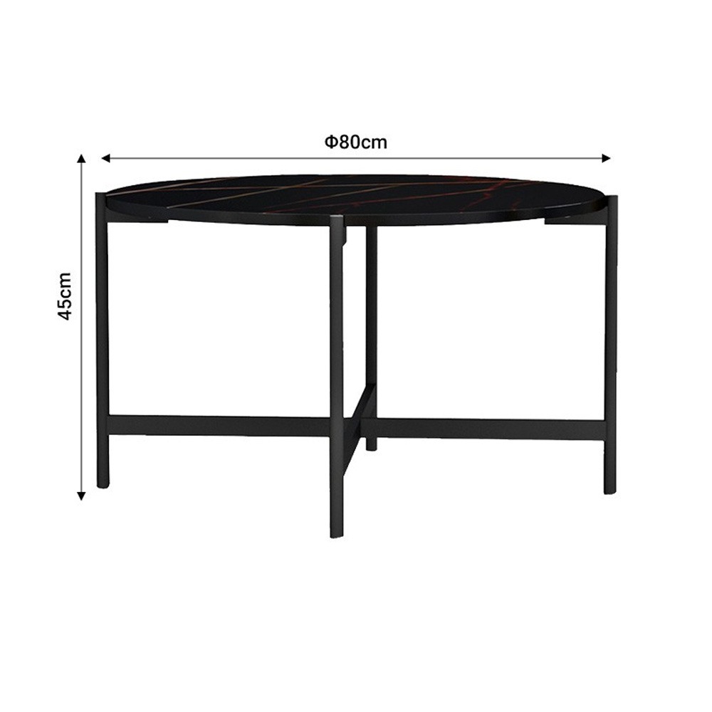 Τραπεζάκι σαλονιού Aisle pakoworld μελαμίνης μαύρο μαρμάρου-μαύρο μέταλλο Φ80×45εκ