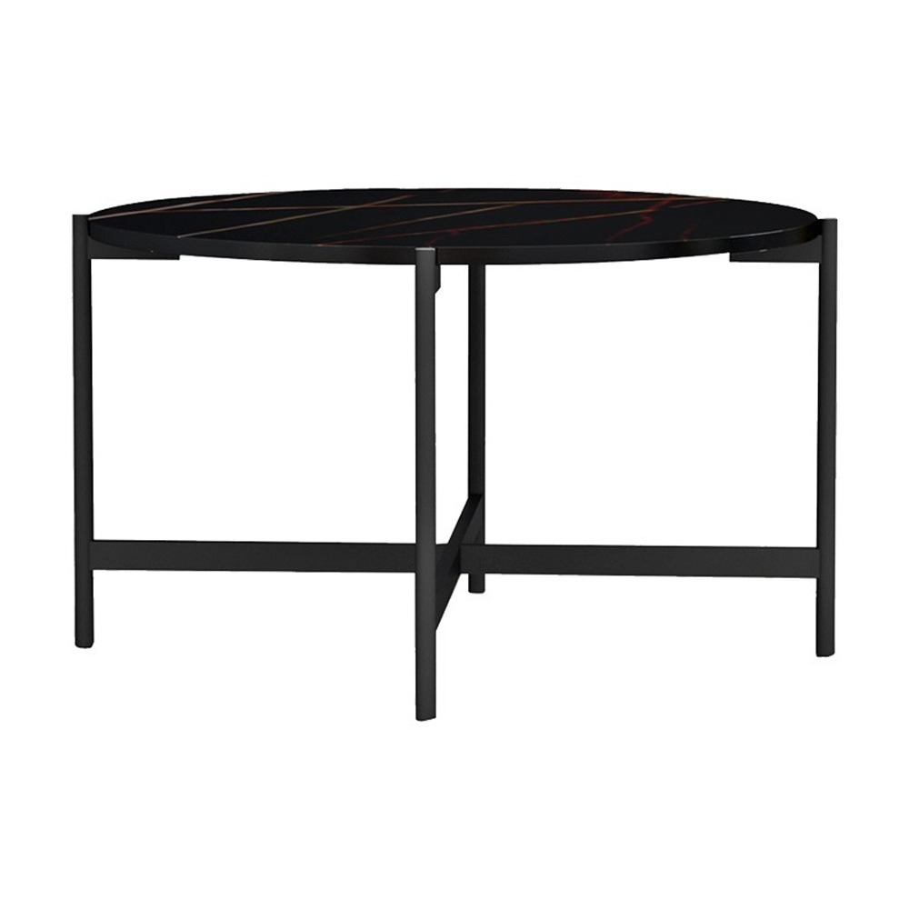 Τραπέζι σαλονιού Emilian pakoworld μελαμίνης μαύρο μαρμάρου-μαύρο μέταλλο Φ60×42εκ