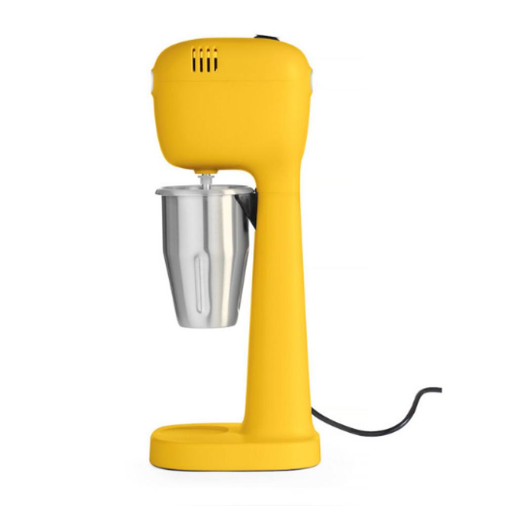 Επαγγελματική φραπιέρα Hendi 220-240V/400W σε κίτρινο χρώμα. Σχεδιασμένη από τον διάσημο Ολλανδό designer Robert Bronwasser, συνδυάζει κορυφαία χαρακτηριστικά υψηλής απόδοσης με μοντέρνο urban style και αποτελεί το απόλυτο πλεονέκτημα για κάθε μπαρ. Διαθέτει διακόπτη on-off δύο ταχυτήτων και προαιρετικά διακόπτη με δυνατότητα επιλογής 5 ταχυτήτων ή/και αυτόματο διακόπτη λειτουργίας ( ενεργοποίηση με το κύπελλο). Ο πανίσχυρός κινητήρας 400W προστατεύεται με θερμικό ασφαλείας αυτόματης επαναφοράς. Στη συσκευασία διατίθενται ένα ανοξείδωτο, ένα PC κύπελλο και σετ δύο αναδευτήρων. Ιδανικό για φραπέ, φρέντο εσπρέσο ή καπουτσίνο και μιλκσέικ. Κυκλοφορεί σε 6 υπέροχα χρώματα.
