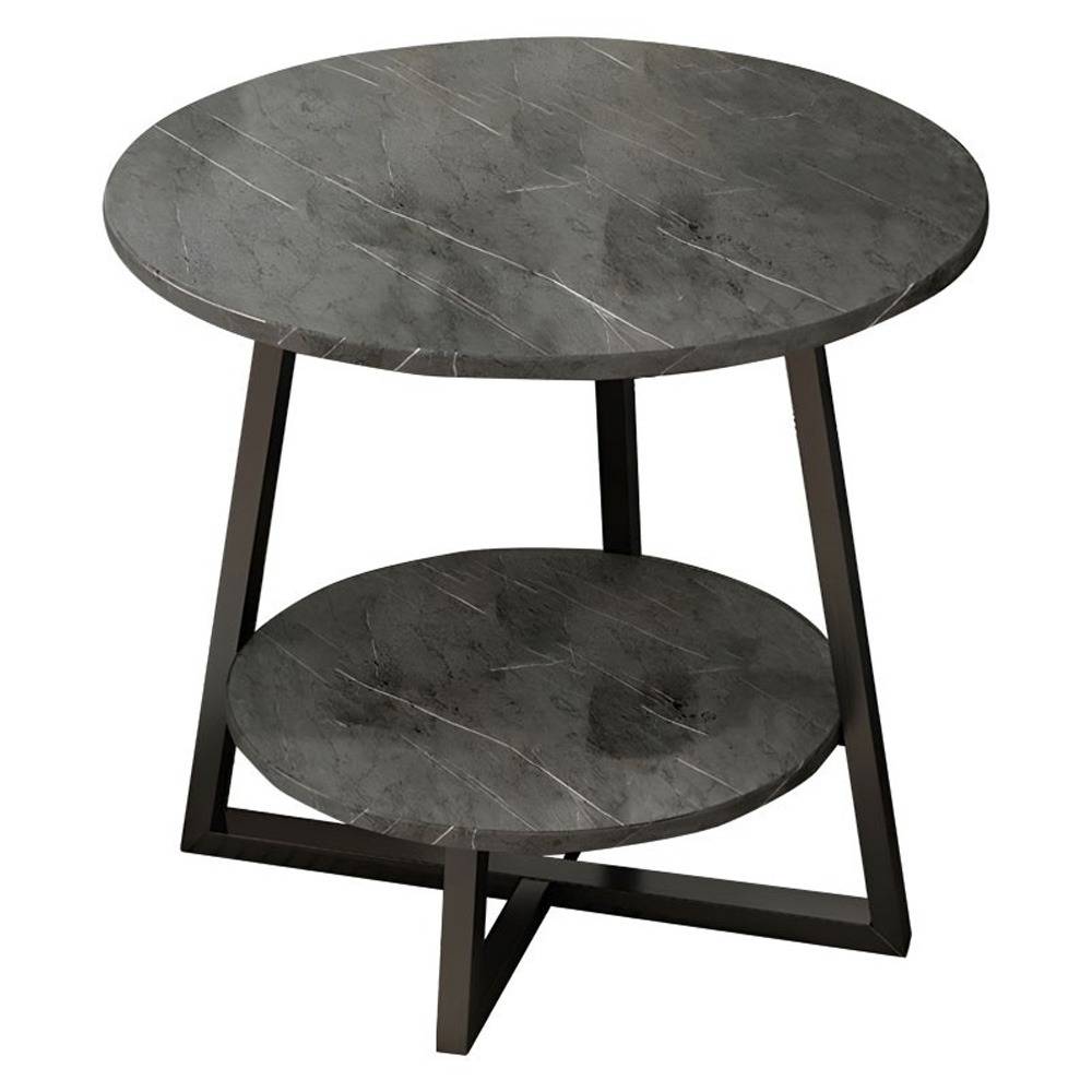 0381375 1 Τραπέζι σαλονιού Rota MDF ανθρακί μαρμάρου-μαύρο Φ60x60cm
