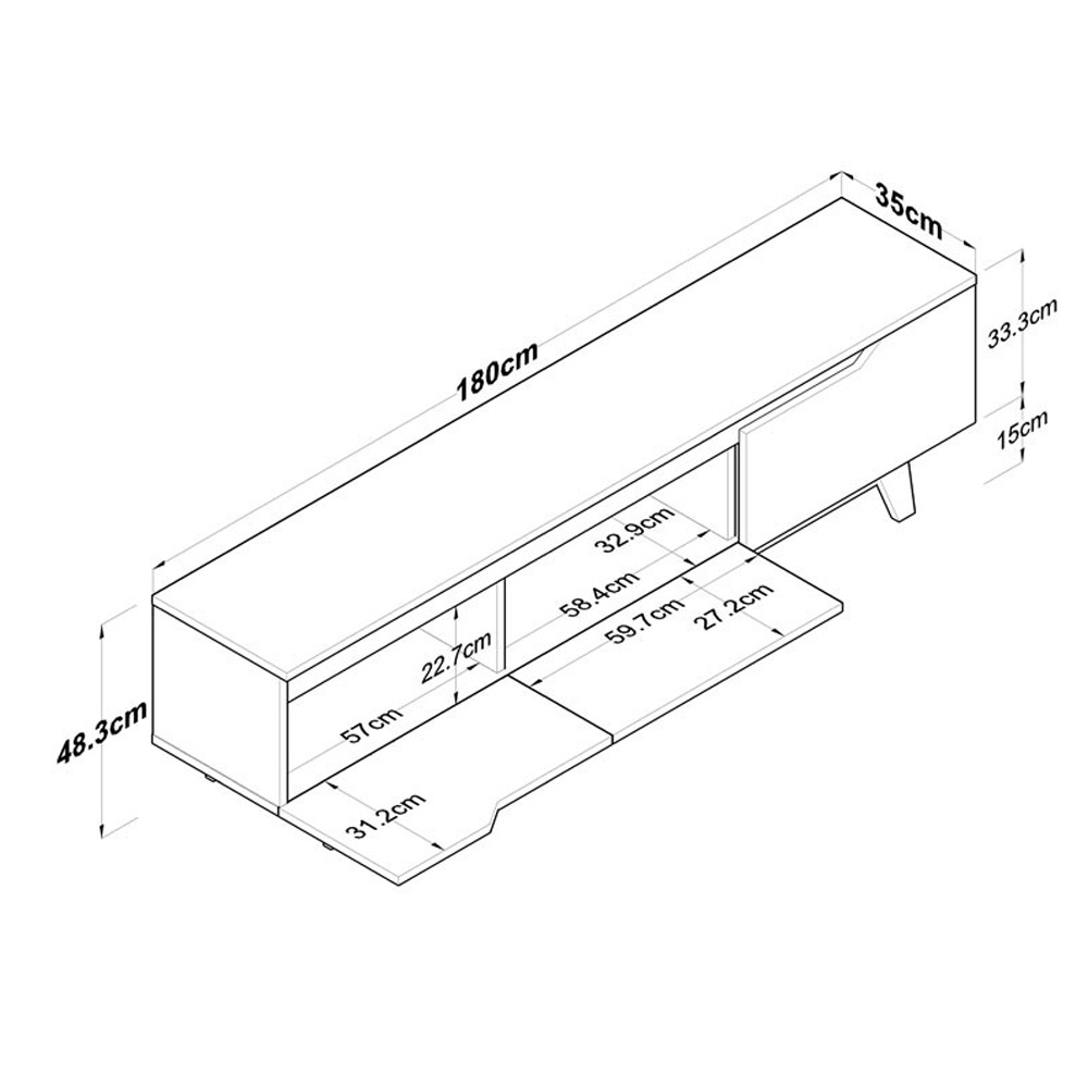 Έπιπλο τηλεόρασης Kasandra pakoworld λευκό-καρυδί 180x35x48,5εκ