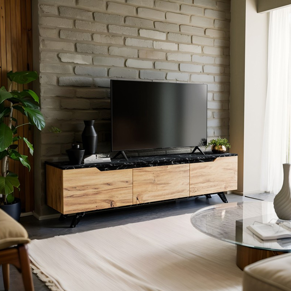 Έπιπλο τηλεόρασης Kasandra pakoworld μαύρο μαρμάρου-ανοικτό καρυδί 180x35x48.3εκ