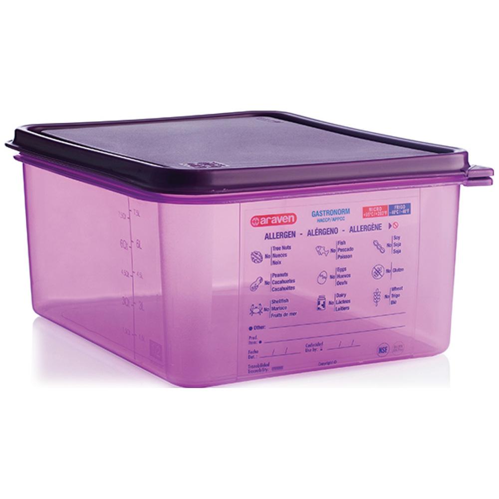 Δοχείο αποθήκευσης τροφίμων Allergen από πολυπροπυλένιο GN1/2 με ύψος 15εκ σε ζωηρό μωβ χρώμα για να αποθηκεύετε και να αρχειοθετείτε εύκολα τρόφιμα. Ένα χρήσιμο και ασφαλές σκεύος για να να οργανώνετε την κουζίνα σας. Ολοκληρώστε τη συλλογή σας με τα υπόλοιπα μεγέθη των δοχείων της σειράς. Κατάλληλο και για καταστήματα εστίασης.