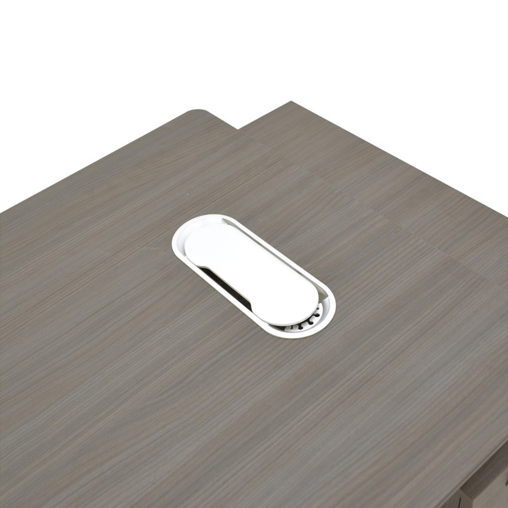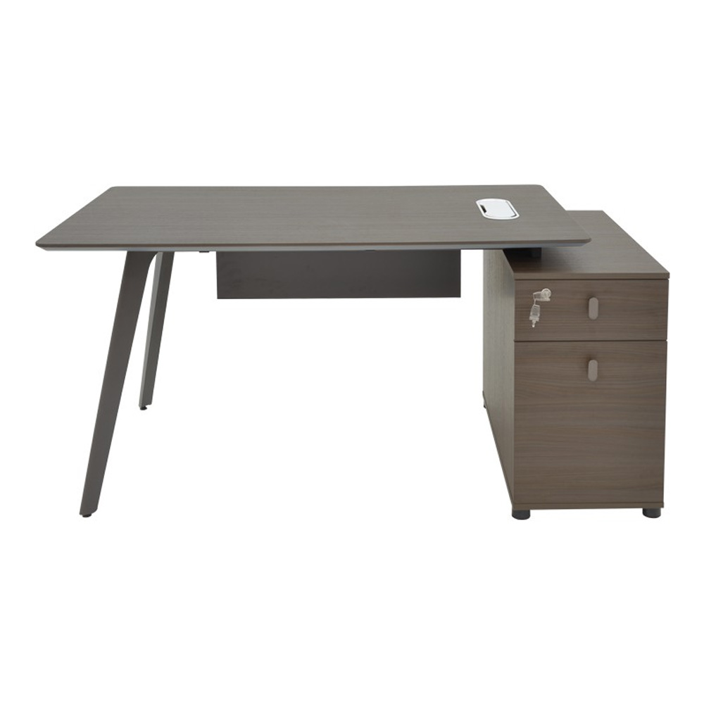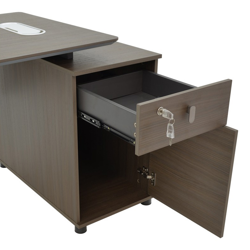 Γραφείο διεύθυνσης με ενσωματωμένο γωνιακό ερμάριο στον εντυπωσιακό χρωματισμό του καρυδί – ανθρακί. Κατασκευασμένο από υλικά υψηλών προδιαγραφών και σύμφωνα με τις εργονομικές απαιτήσεις του σήμερα.
