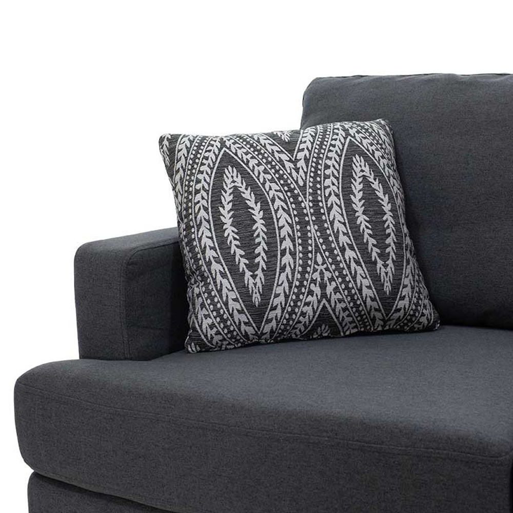 038641 6 Γωνιακός Καναπές Με Σκαμπό Υφασμάτινος Ανθρακί με Μαξιλάρια Slim 185x140x70cm Pako