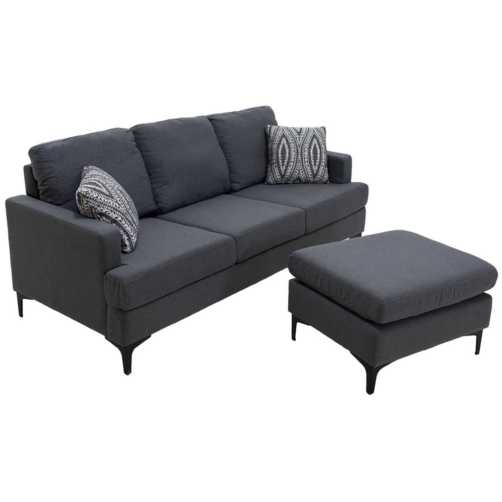 038641 3 Γωνιακός Καναπές Με Σκαμπό Υφασμάτινος Ανθρακί με Μαξιλάρια Slim 185x140x70cm Pako