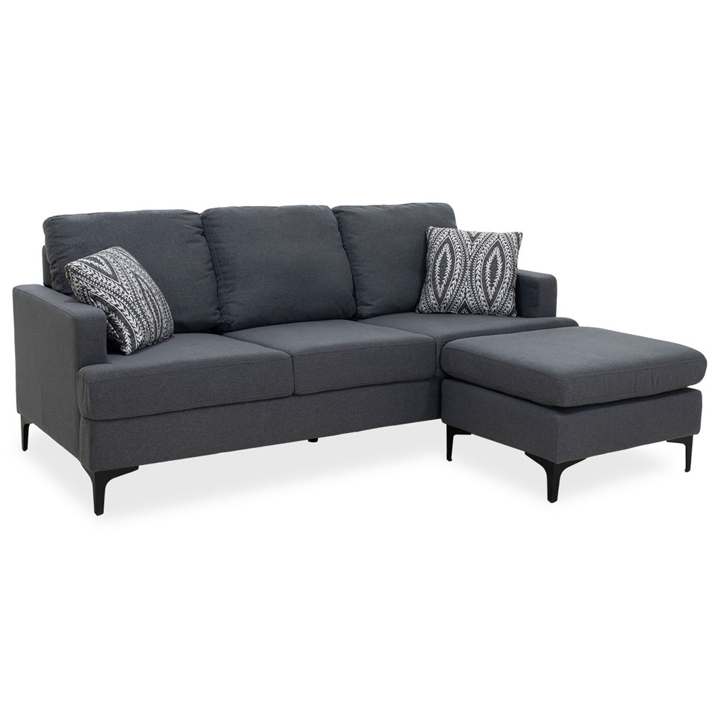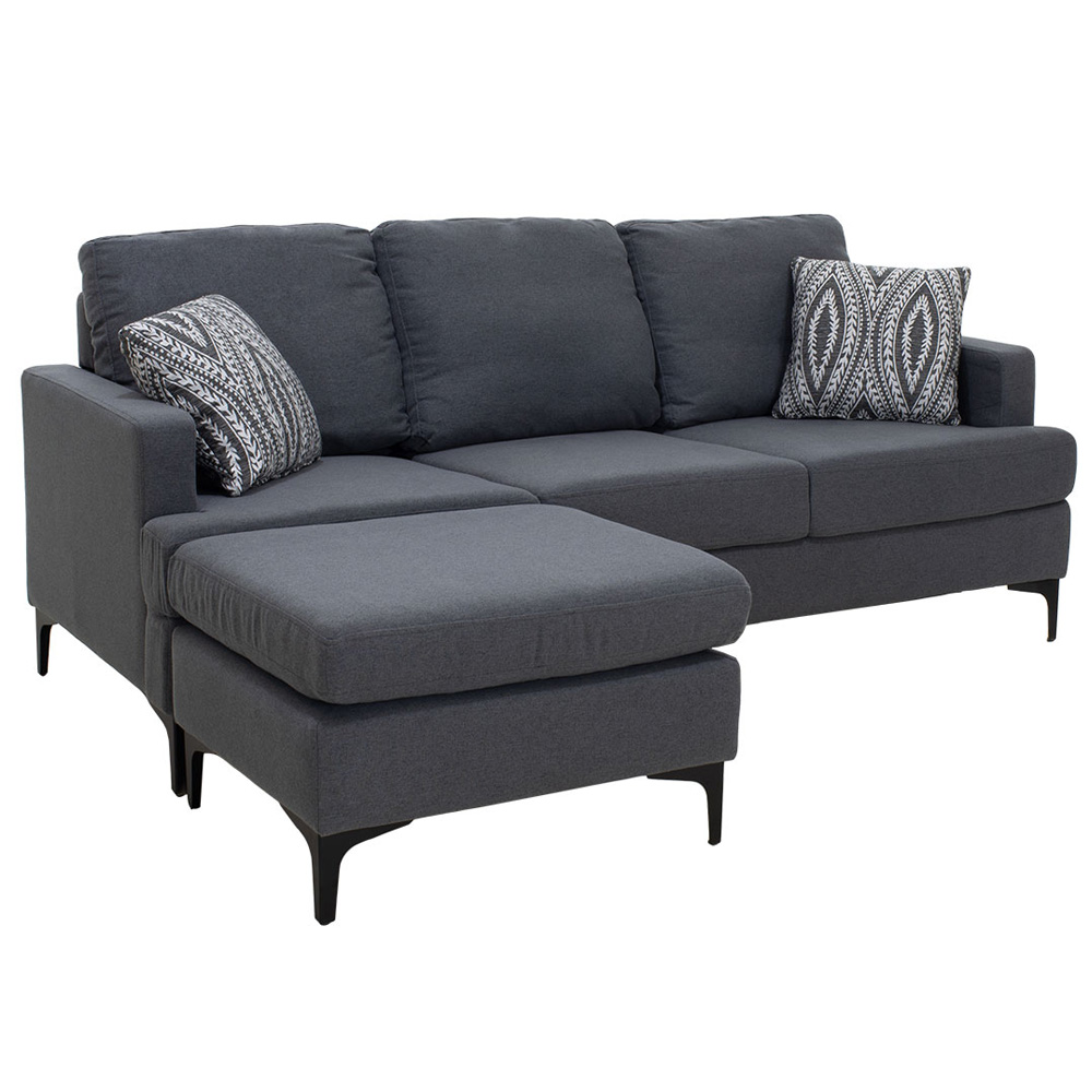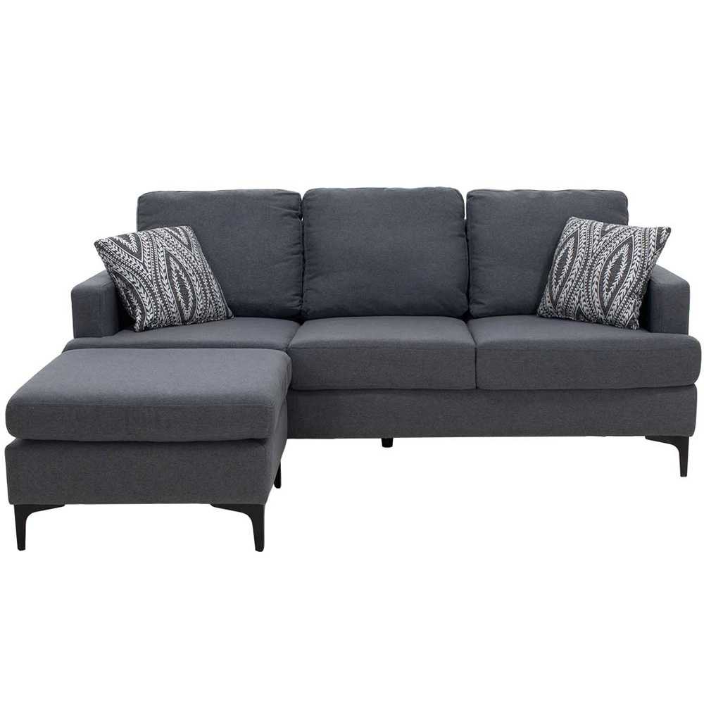 038641 2 Γωνιακός Καναπές Με Σκαμπό Υφασμάτινος Ανθρακί με Μαξιλάρια Slim 185x140x70cm Pako
