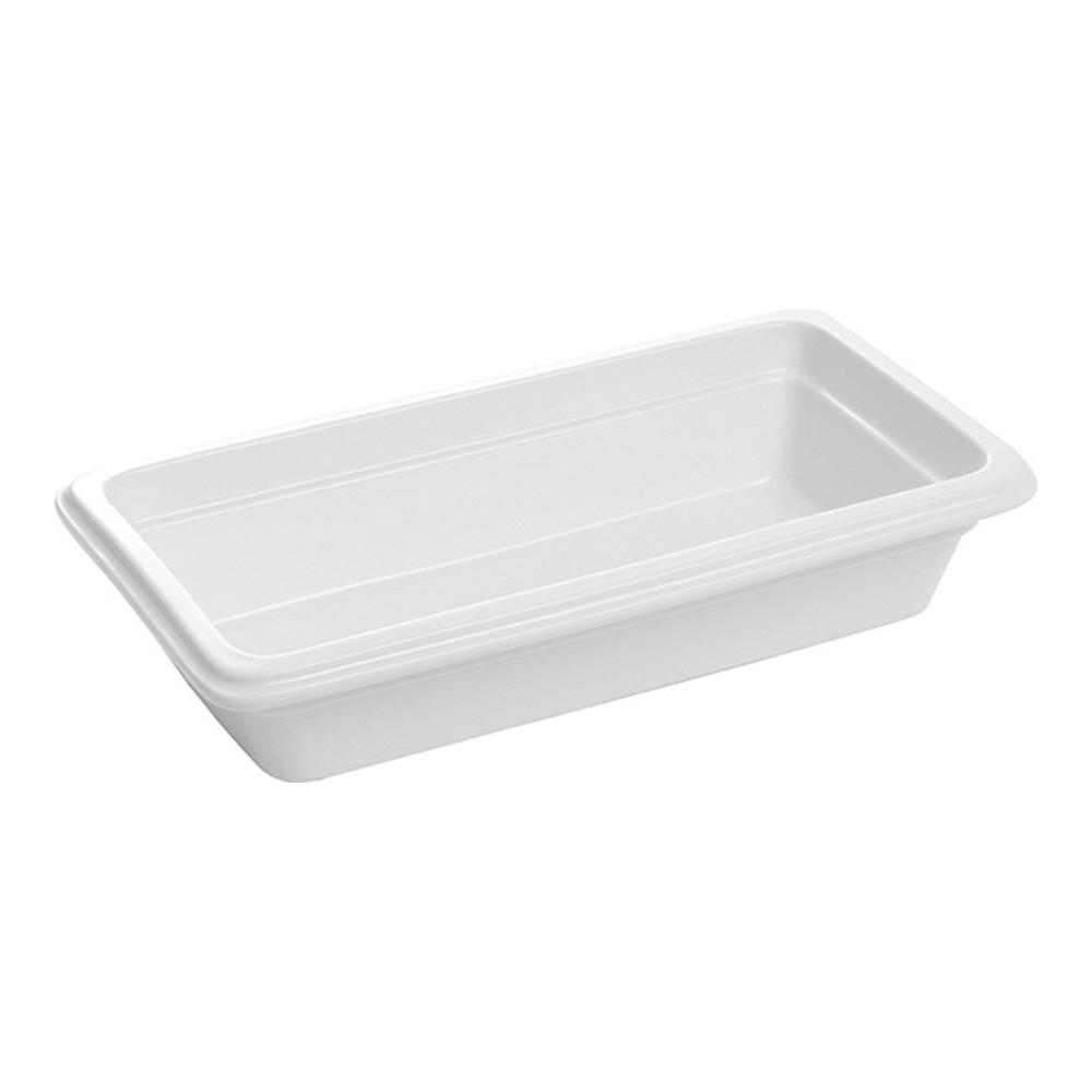 Δοχείο Gastronorm GN 1/3 6,5 εκ, πορσελάνης. Ειδικού τύπου πορσελάνη, η πιο ανθεκτική στην αγορά. Ανθεκτική στις αλλαγές θερμοκρασίας – αντέχει τεράστιες μεταβολές. Υψηλή αντοχή στα χτυπήματα και στη φθορά, με σχετικά χαμηλό βάρος. Εξαιρετικά αμιγής και αστραφτερή.