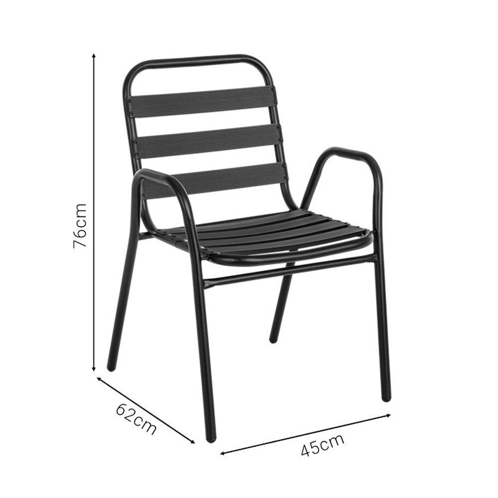 Σταθερός σκελετός από μέταλλο εξαιρετικής ποιότητας με αντοχή σε φθορά και χρόνο, ενώ τα κομμάτια έδρας και πλάτης είναι κατασκευασμένα από φέτες αλουμινίου. Το μέταλλο παρέχει ανθεκτικότητα και σταθερότητα, ενώ οι φέτες αλουμινίου προσθέτουν ελαφρότητα και μια μοντέρνα αίσθηση στον σχεδιασμό. Η πολυθρόνα αυτή είναι ιδανική για χρήση σε εξωτερικούς χώρους, καθώς η ανθεκτικότητα στις καιρικές συνθήκες του αλουμινίου την καθιστά ανθεκτική σε έκθεση στον ήλιο και την υγρασία.
