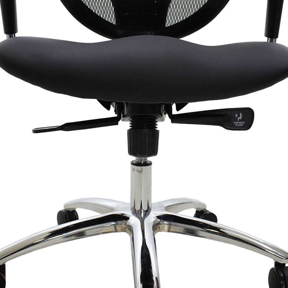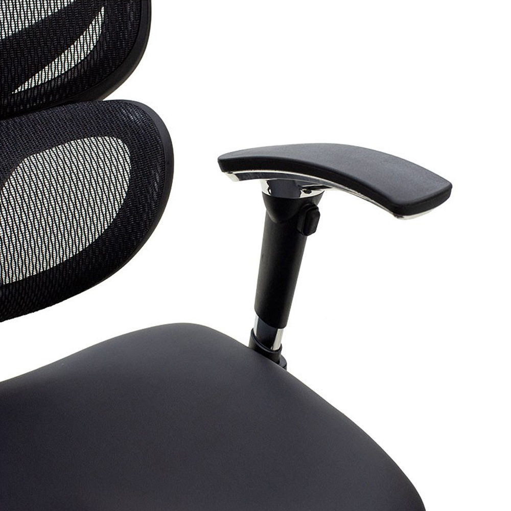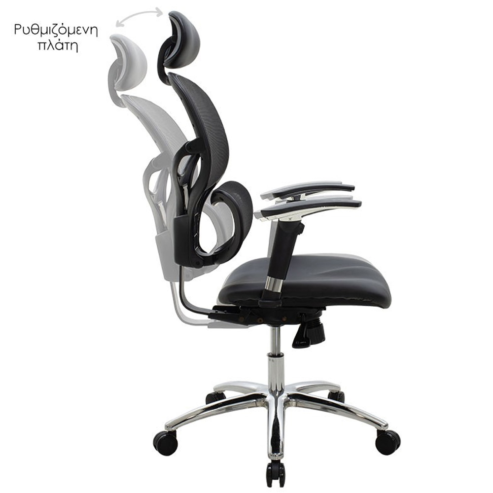 * Σχεδιασμός ψηλής πλάτης που ακολουθεί την σπονδυλική στήλη για μεγαλύτερη ανατομία σε διάτρητο ύφασμα Mesh σε μαύρο χρώμα. Η πλάτη μπορεί να ανεβοκατέβει σε διάφορες θέσεις ανεξάρτητα.
