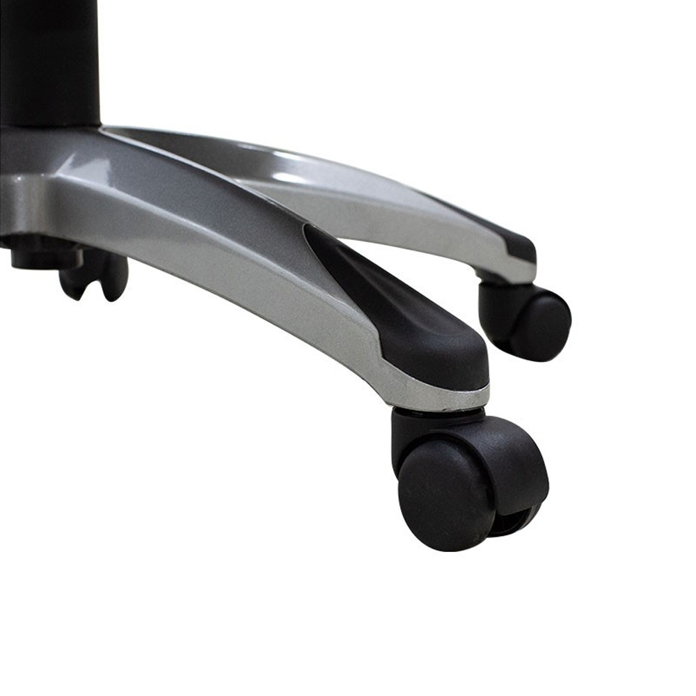 * Ανθεκτικός σκελετός: Από ενισχυμένο πολυκαρβονικό σε χρώμα γκρι/ασημί και με έδραση σε 5ντακτινωτή τροχήλατη βάση υψηλών αντοχών. Προσφέρει την εύκολη μετακίνηση προς κάθε κατεύθυνση.