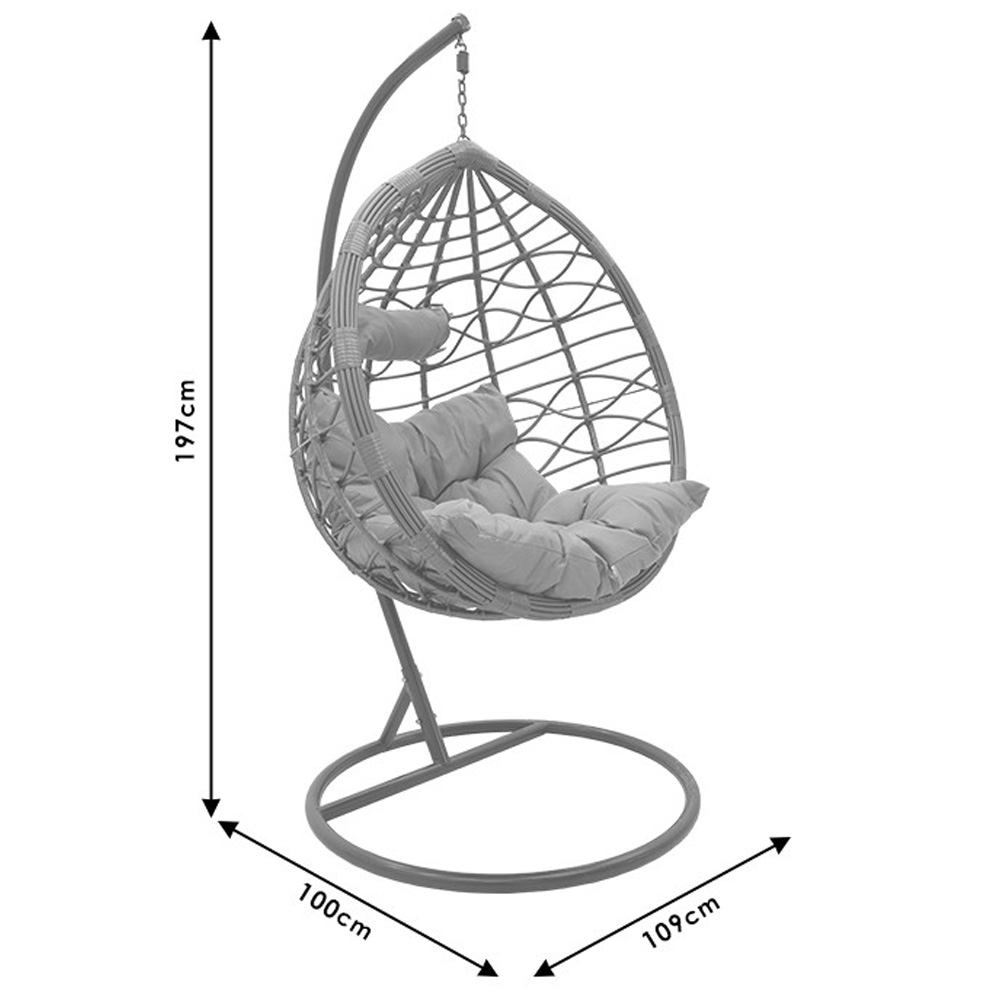 Κούνια κήπου Hudson κρεμαστή μέταλλο-pp-μαξιλάρι γκρι 109x100x197εκ