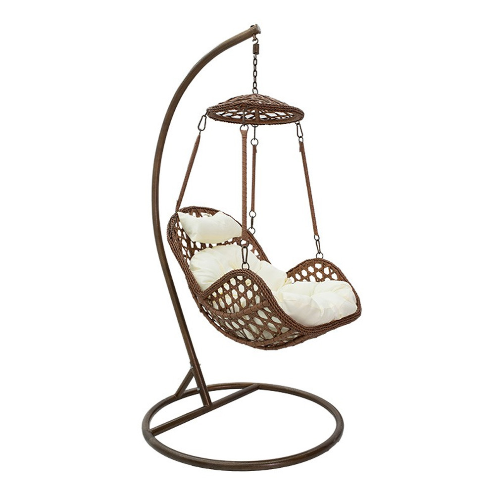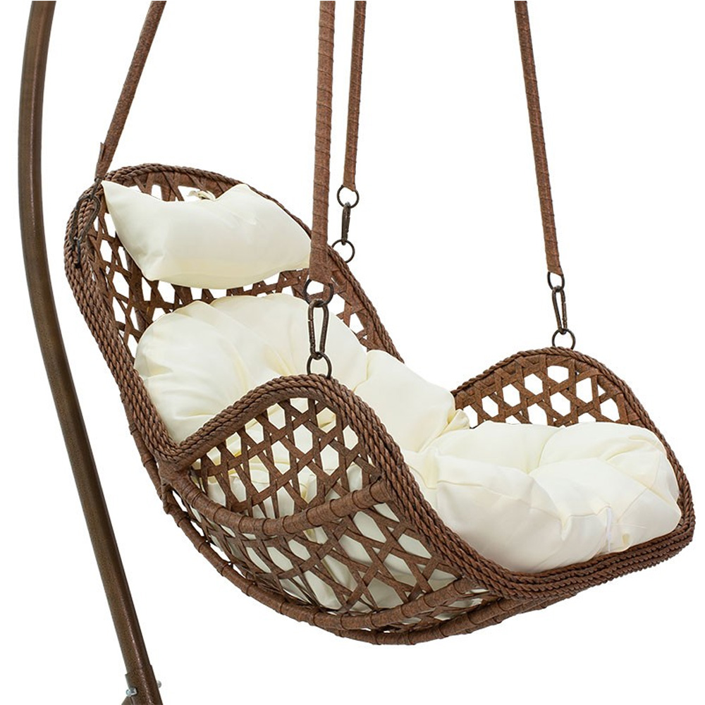 Κούνια κήπου Margie κρεμαστή μέταλλο-pp καφέ μαξιλάρι-μπεζ 100x100x195εκ