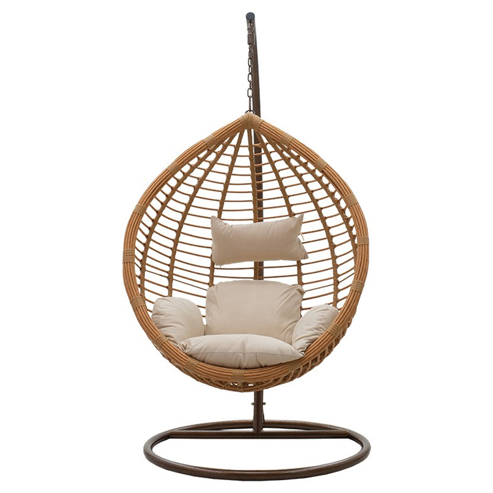 Κούνια κήπου Nadim κρεμαστή μέταλλο καφέ -μαξιλάρι μπεζ-pe φυσικό