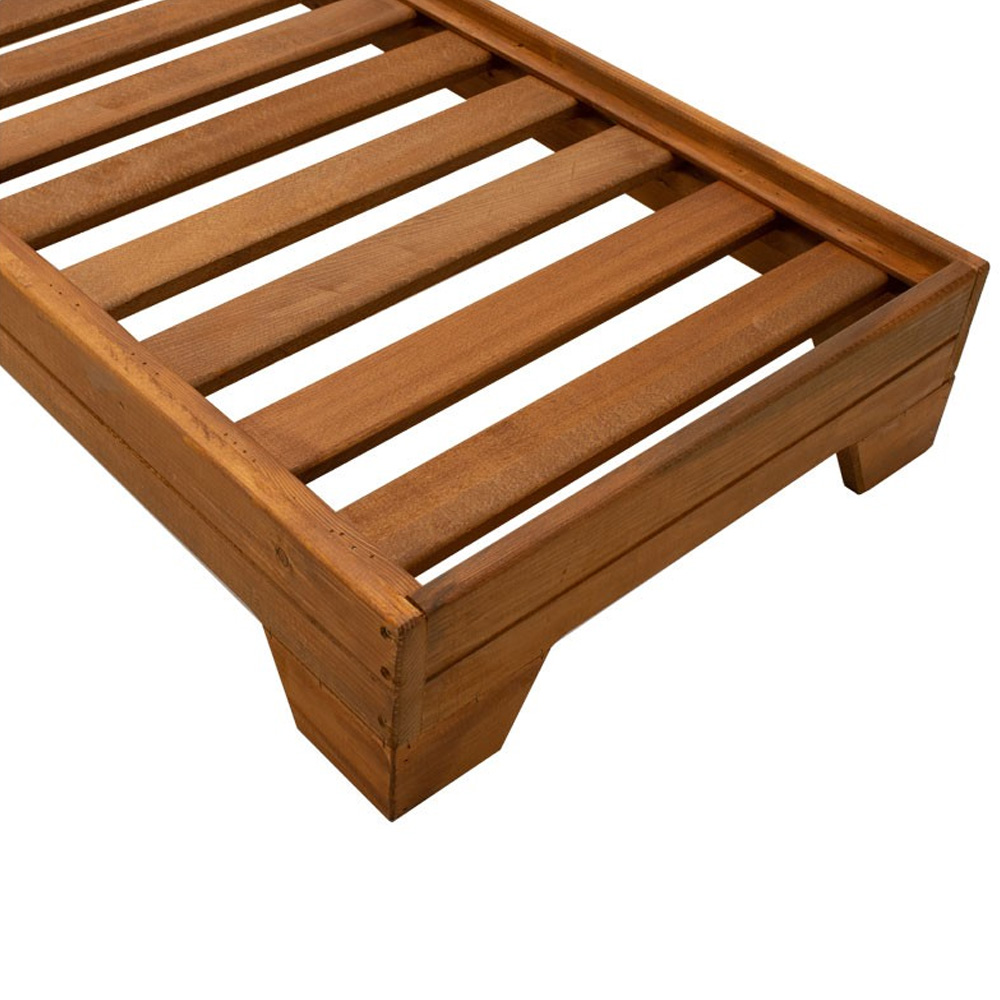 Ξαπλώστρα Sadie. Είναι κατασκευασμένη από ανθεκτικό σκελετό μασίφ ξύλο από έλατο σε χρώμα καρυδί. Η εμποτισμένη ξυλεία με βερνίκι που χρησιμοποιείται την κάνει ιδανική για αντοχή στις εξωτερικές συνθήκες.