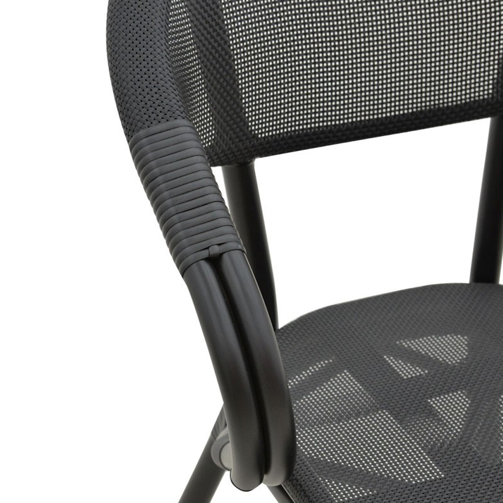 * Επένδυση καθίσματος με εξαιρετικής ποιότητας ύφασμα textilene. Το textilene είναι πλενόμενο και ανθεκτικό στις συνθήκες του εξωτερικού πέριβάλλοντος (ηλιακή ακτινοβολία, υγρασία).