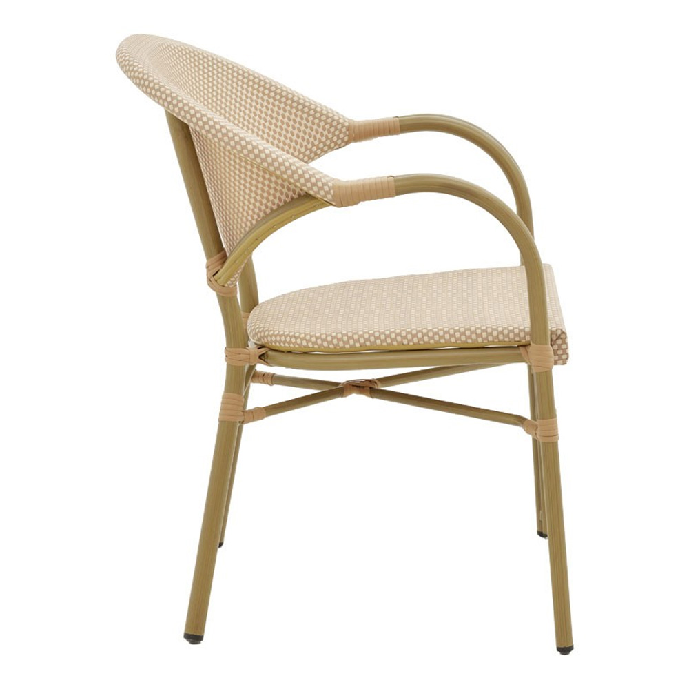 * Επένδυση καθίσματος με εξαιρετικής ποιότητας ύφασμα textilene. Το textilene είναι πλενόμενο και ανθεκτικό στις συνθήκες του εξωτερικού πέριβάλλοντος (ηλιακή ακτινοβολία, υγρασία).