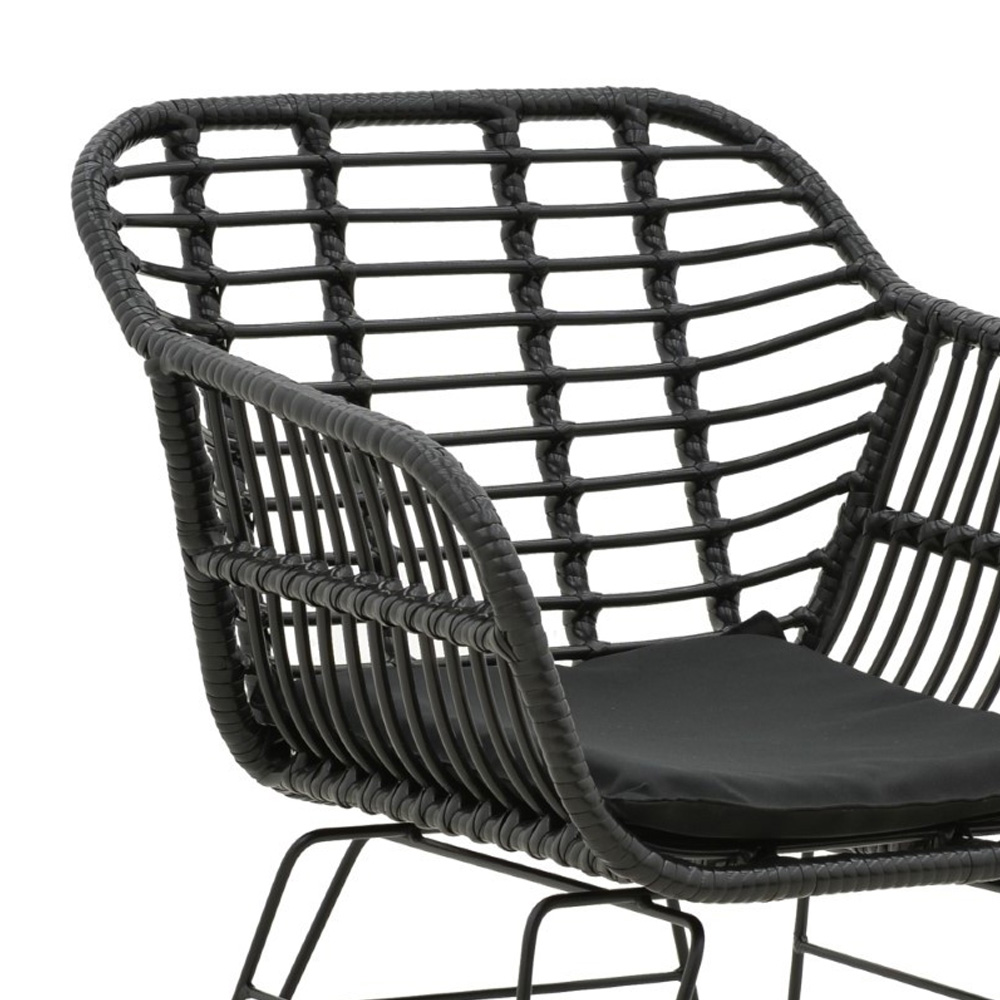 Κυρίως επιφάνεια καρέκλας από PE rattan. Το PE rattan είναι ένα είδος οικολογικού συνθετικού rattan, ανακυκλώσιμο και με μεγαλύτερη ανθεκτικότητα σε σχέση με τα άλλα είδη.