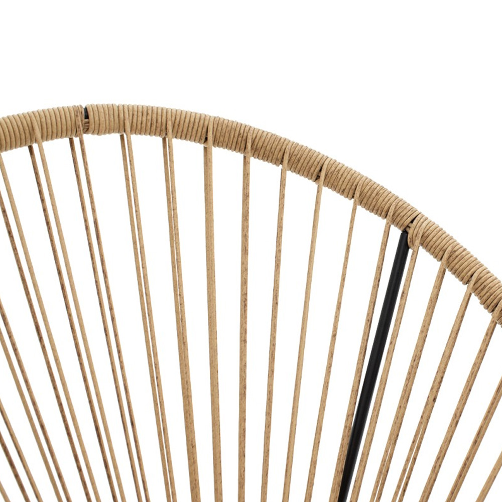Σταθερός σκελετός από μέταλλο με αντοχή στην καταπόνηση και στη φθορά. Κυρίως σώμα καρέκλας από εξαιρετικής ποιότητας PE rattan. Το PE rattan είναι ένα είδος οικολογικού συνθετικού rattan, ανακυκλώσιμο και με μεγαλύτερη ανθεκτικότητα σε σχέση με τα άλλα είδη.