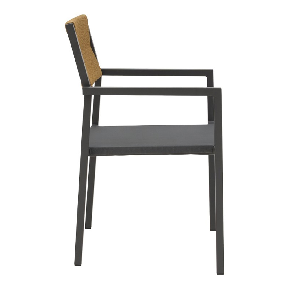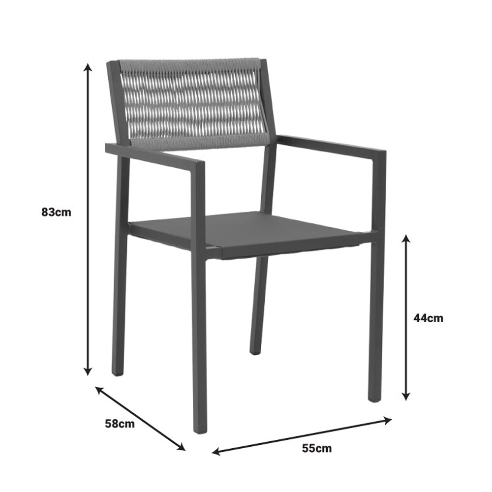 * Έδρα κατασκευασμένη από textilene. Το textilene είναι ένα εξαιρετικά ανθεκτικό υλικό που χρησιμοποιείται ευρέως σε επίπλωση εξωτερικών χώρων και εξαρτήματα. Αποτελείται από πολυεστερικές ινώδεις που επικαλύπτονται με PVC (πολυβινυλοχλωρίδιο), δημιουργώντας ένα υλικό που συνδυάζει ανθεκτικότητα, αντοχή στις καιρικές συνθήκες και εύκαμπτη υφή. Το υλικό αυτό επιτρέπει τη διέλευση του αέρα, βοηθώντας στη διατήρηση μιας δροσερής αίσθησης κατά τη χρήση.