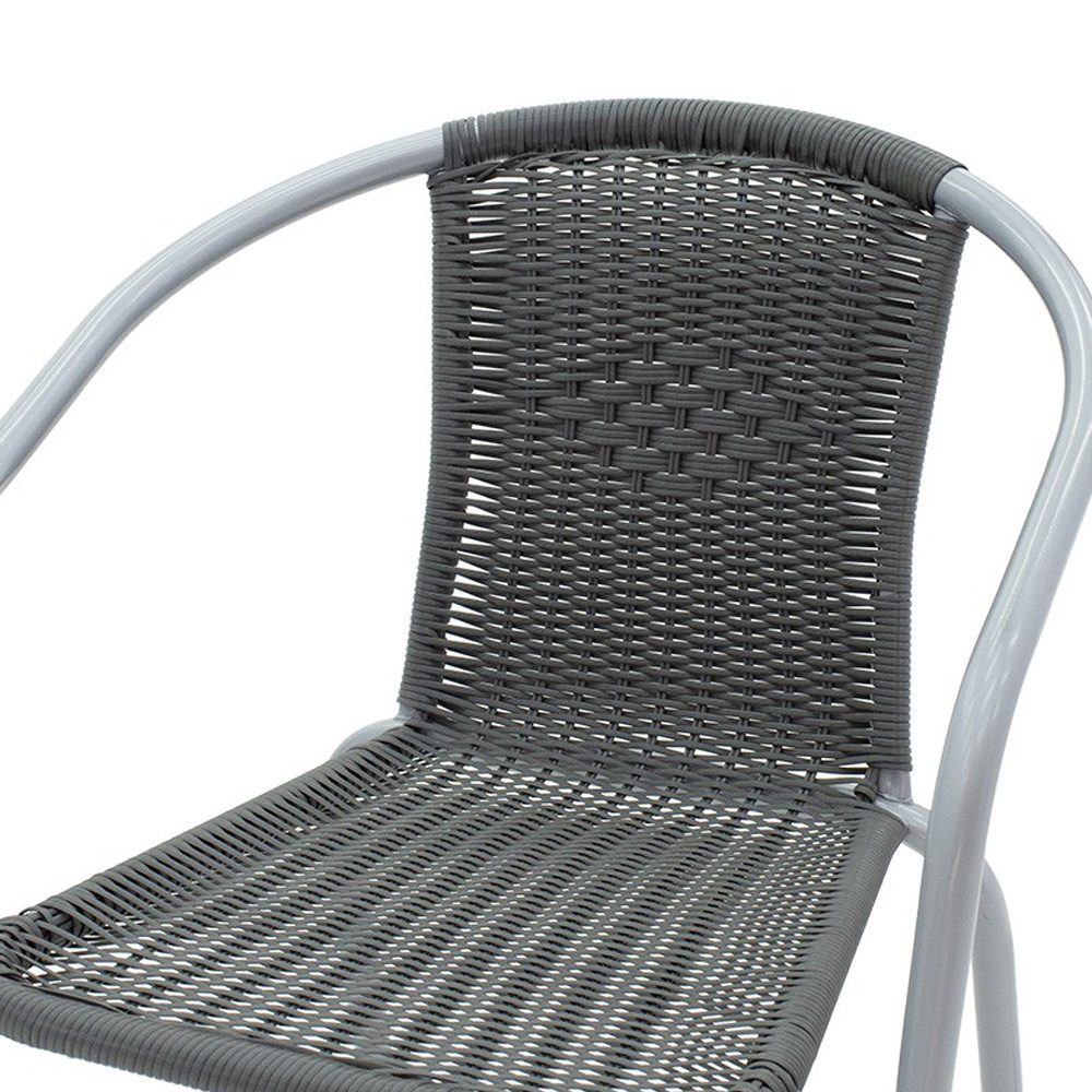 Σταθερός σκελετός από μέταλλο με αντοχή στην καταπόνηση και στη φθορά. Κυρίως σώμα έδρας-πλάτης από εξαιρετικής ποιότητας PE rattan. Το PE rattan είναι ένα είδος οικολογικού συνθετικού rattan, ανακυκλώσιμο και με μεγαλύτερη ανθεκτικότητα σε σχέση με τα άλλα είδη.
