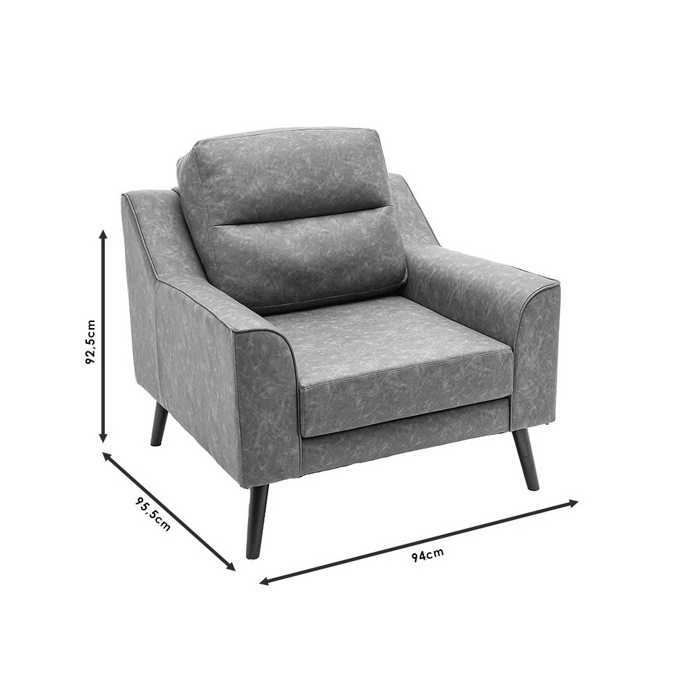 Η πολυθρόνα Lonnie με επένδυση τεχνόδερμα pu στην απόχρωση του γκρι antique και με έξτρα μαξιλάρι στο ίδιο χρώμα, θα απογειώσει την αισθητική του χώρου σας.