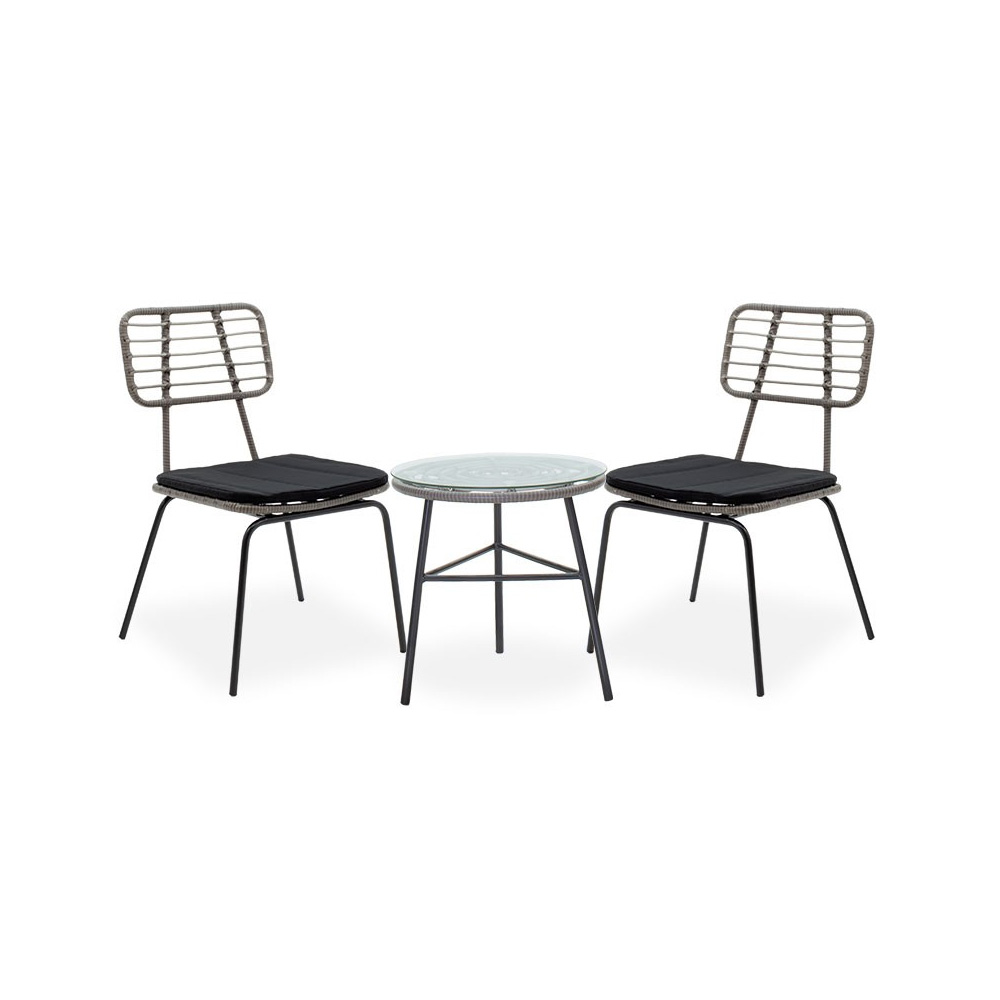 Σαλόνι κήπου Gaus-Naoki σετ 3τεμ pakoworld μέταλλο-μαύρο-pe γκρι