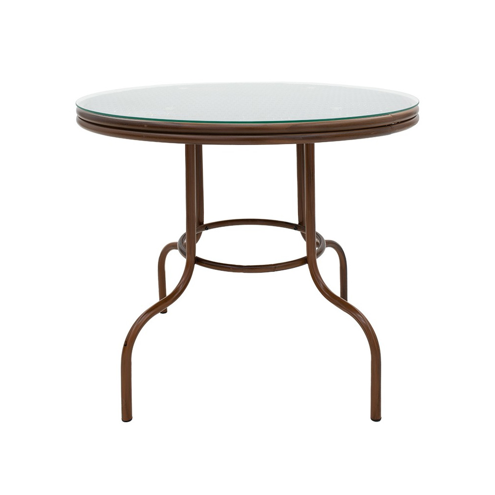 * Κυρίως επιφάνεια τραπεζιού από PE rattan. Το PE rattan είναι ένα είδος οικολογικού συνθετικού rattan, ανακυκλώσιμο και με μεγαλύτερη ανθεκτικότητα σε σχέση με τα άλλα είδη. Με στρογγυλές ακμές για την αποφυγή τραυματισμών.
