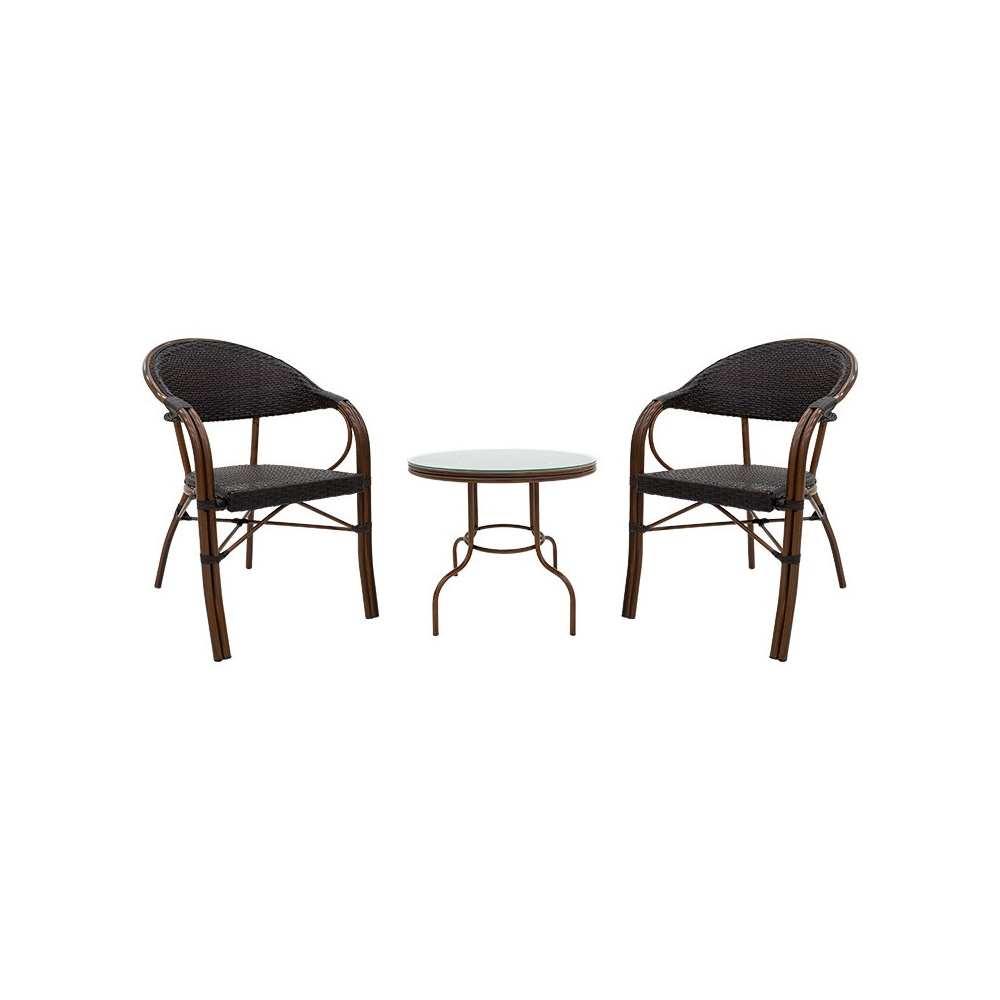 Σαλόνι κήπου Paula σετ 3τεμ pakoworld μέταλλο-pe rattan καφέ