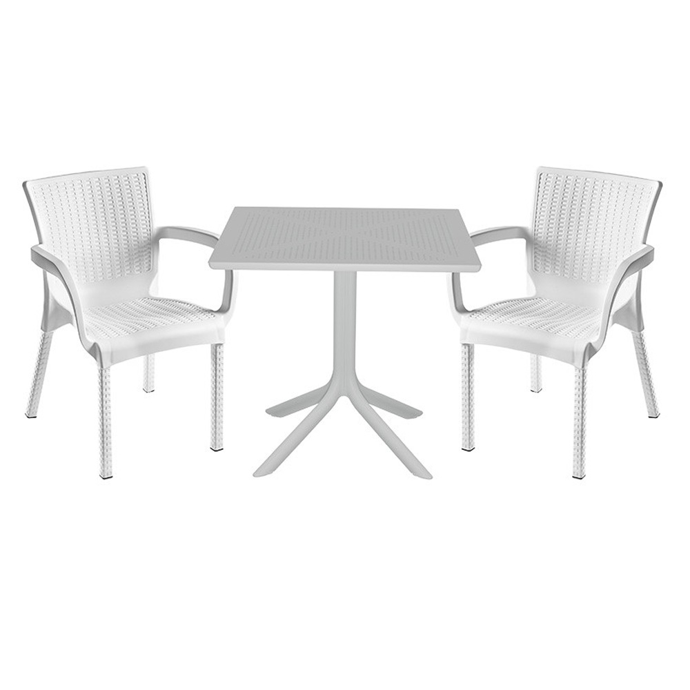 Τραπεζαρία κήπου Groovy-Festive pakoworld σετ 3τεμ PP λευκό 80x80x74,5εκ