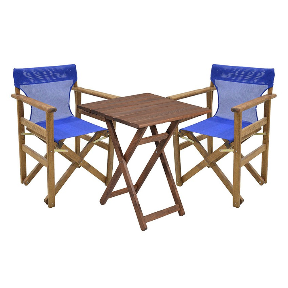Τραπεζαρία κήπου Retto σετ 3τμχ μασίφ ξύλο οξιάς καρυδί-πανί μπλε 60x60x71εκ