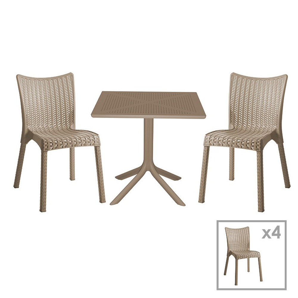 Τραπεζαρία κήπου Groovy-Confident σετ 5τεμ PP cappuccino 80x80x74,5εκ.