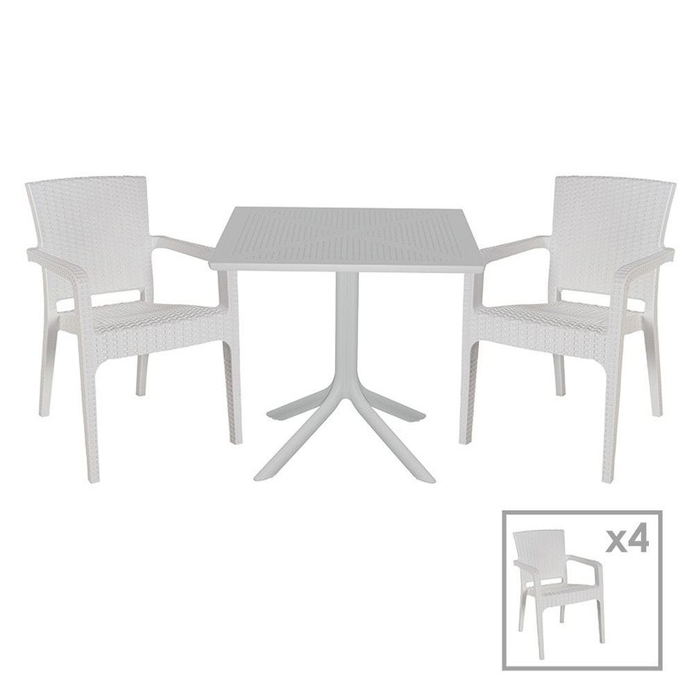 Τραπεζαρία κήπου Groovy-Halcyon σετ 5τεμ PP λευκό 80x80x74,5εκ