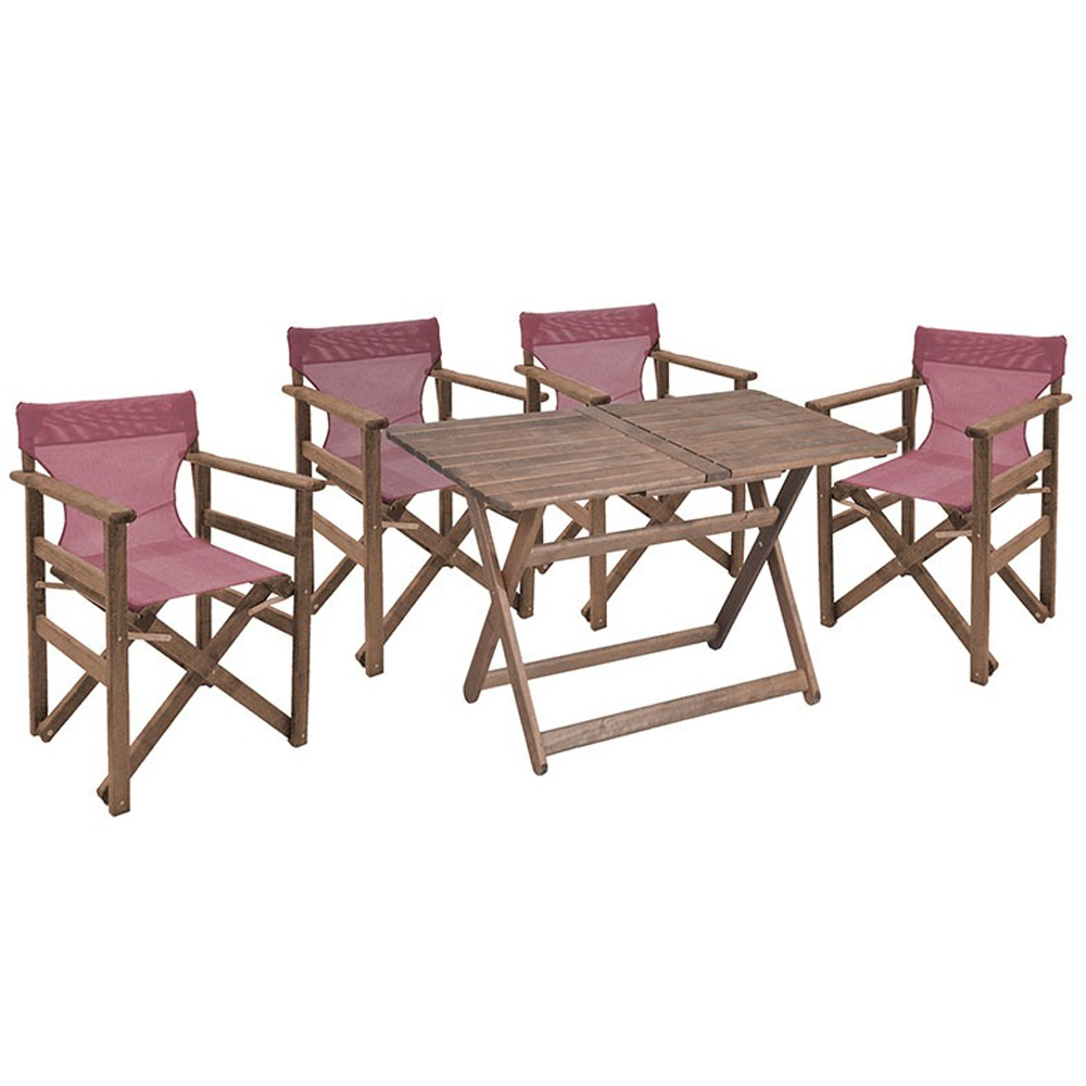 Τραπεζαρία κήπου Retto σετ 5τμχ μασίφ ξύλο οξιάς καρυδί-μπορντό 120x75x71εκ