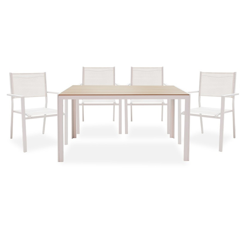 Τραπεζαρία κήπου Nares-Moly σετ 5τεμ αλουμίνιο-textilene λευκό plywood φυσικό