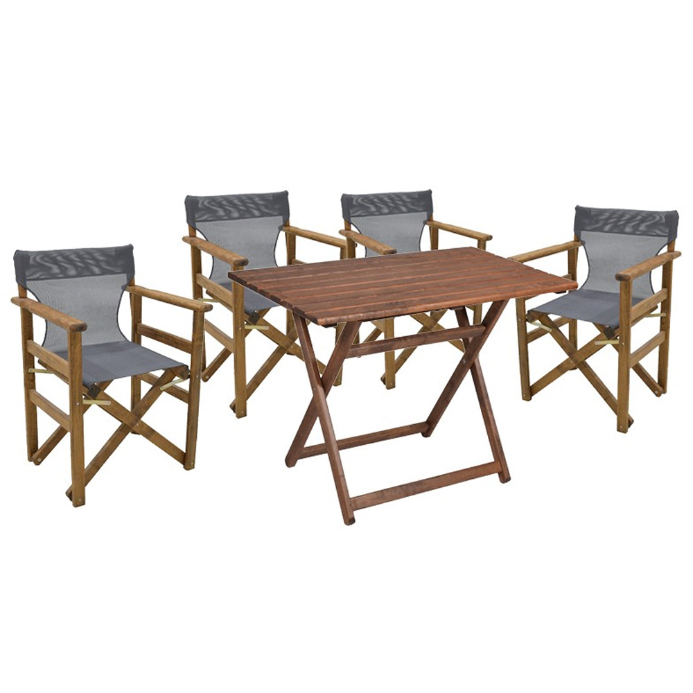 Σετ Τραπεζαρία Κήπου 5τμχ Retto Καρυδί – Γκρι – Λευκό 80x60x72cm Pako