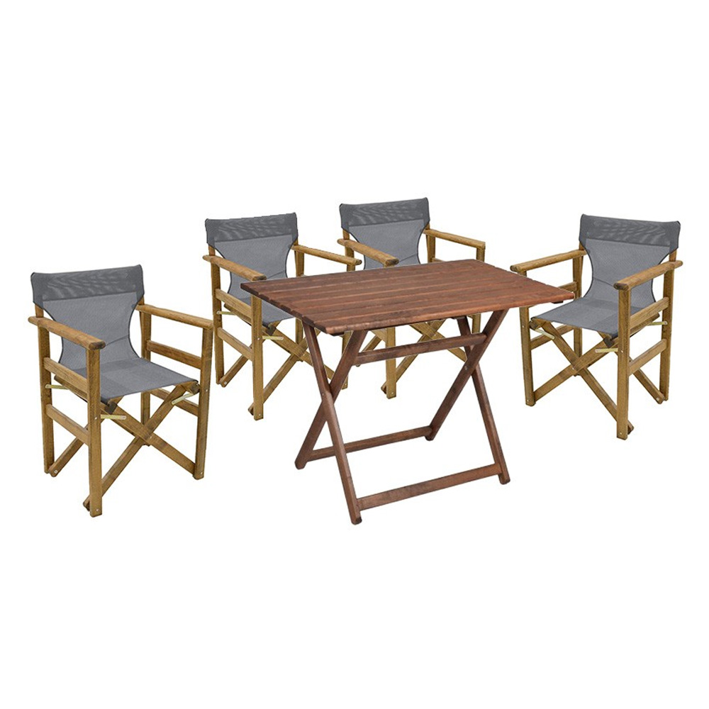 Τραπεζαρία κήπου Retto σετ 5τμχ μασίφ ξύλο οξιάς καρυδί-καραβόπανο γκρι-λευκό 100x60x71εκ
