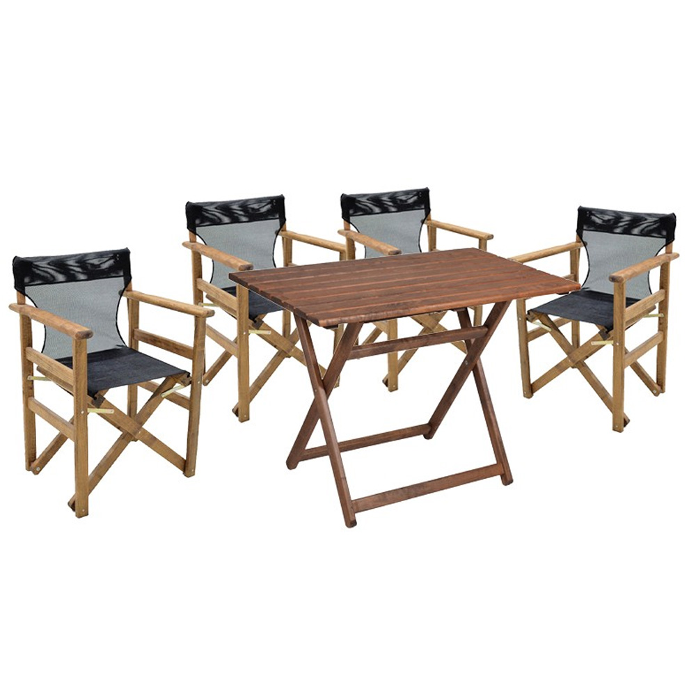 Σετ Τραπεζαρία Κήπου 5τμχ Retto Καρυδί – Μαύρο 80x60x72cm Pako