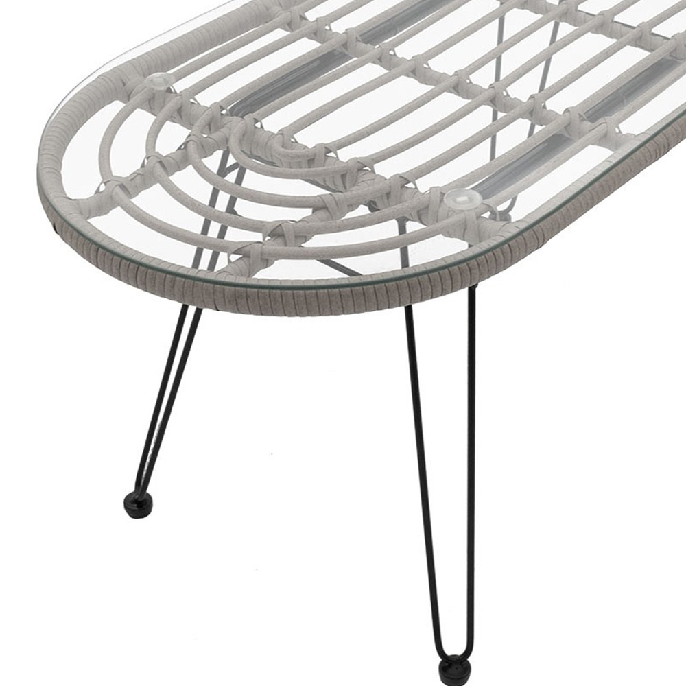 Κυρίως επιφάνεια τραπεζιού από PE rattan. Το PE rattan είναι ένα είδος οικολογικού συνθετικού rattan, ανακυκλώσιμο και με μεγαλύτερη ανθεκτικότητα σε σχέση με τα άλλα είδη. Με στρογγυλές ακμές για την αποφυγή τραυματισμών.